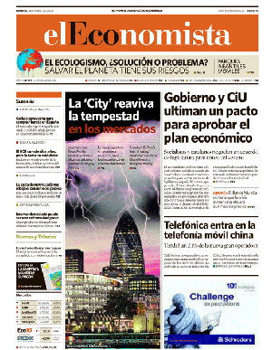 el Economista UM NOVO CONCEITO DE JORNALISMO ECONÓMICO Detentor de um jornalismo técnico e especializado, dirigido aos grandes grupos económicos e empresariais, o elEconomista põe em prática um jornalismo de amplo alcance, projectado para todos aqueles que precisam e querem conhecer as grandes chaves económicas do século XXI para impulsionar a sua vida profissional: apresentamos as vantagens, os êxitos, os desafios e as ameaças da economia espanhola e europeia, num mundo cada vez mais global. É com este objectivo, que apresentamos um novo conceito de jornalismo económico que é válido, sério e rigoroso, mas também agradável e de fácil compreensão, abrangendo um público amplo: empresários e gestores de grandes, médias e pequenas empresas; empreendedores, mulheres, profissionais, investidores e consumidores. É acima de tudo uma leitura para todos aqueles que são conscientes de que a economia é a base das suas vidas e que procuram um jornal que os ajude a enfrentar o futuro.